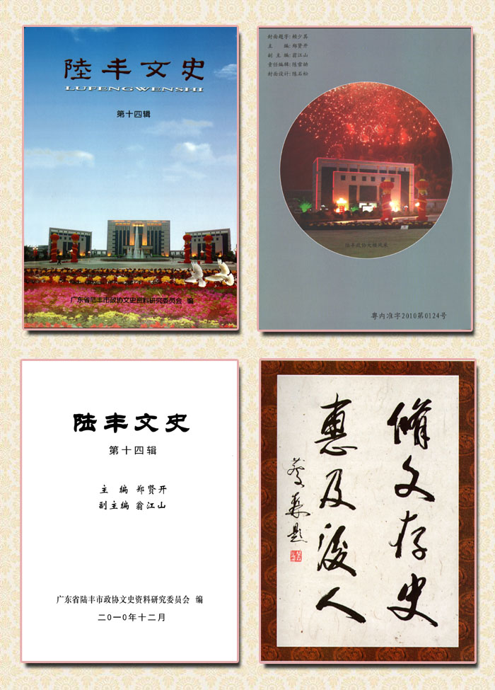 《陸豐文史》第十四輯封面及領導題字