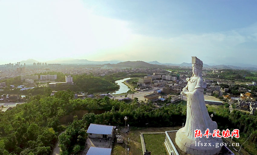 陸豐福山媽祖位于福山山麓、深汕高速公路陸豐霞湖出入口,交通便利,地理環(huán)境優(yōu)越。區(qū)內(nèi)的天后宮,背靠福山,面向螺河,依山傍水,風(fēng)景迷人。天后宮原建在陸城城內(nèi),雍正九年(公元1731年)搬遷至現(xiàn)址,現(xiàn)已建成一處有相當(dāng)規(guī)模的古典式廟宇。山頂上有一座高24.99米,用365塊白色花崗巖精石拼砌而成的媽祖立式雕像。整個(gè)建筑,青磚、紅柱、黃瓦,造型古樸,富有中國(guó)傳統(tǒng)的殿堂建筑特色。