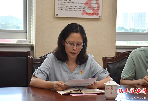 市政協機關黨總支部書記周丹梅為全體黨員上了《堅守為民初心、勇于擔當作為》黨課。