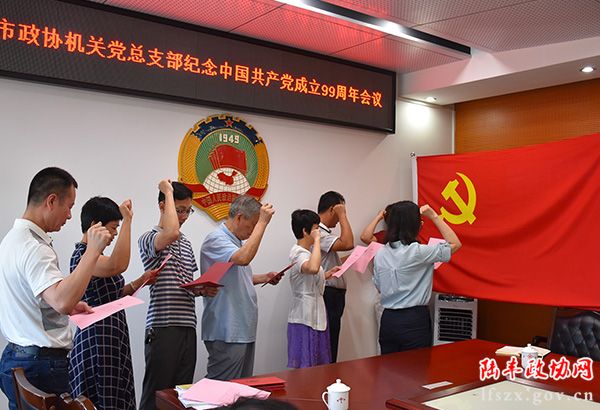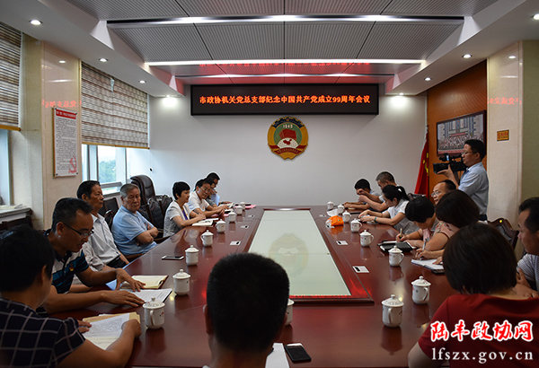 6月30日上午,市政協機關黨總支部召開慶祝中國共產黨成立99周年會議,回顧黨的光輝歷程,緬懷黨的豐功偉績,圍繞“走實走好新時代群眾路線”主題過組織生活,探討交流心得體會。