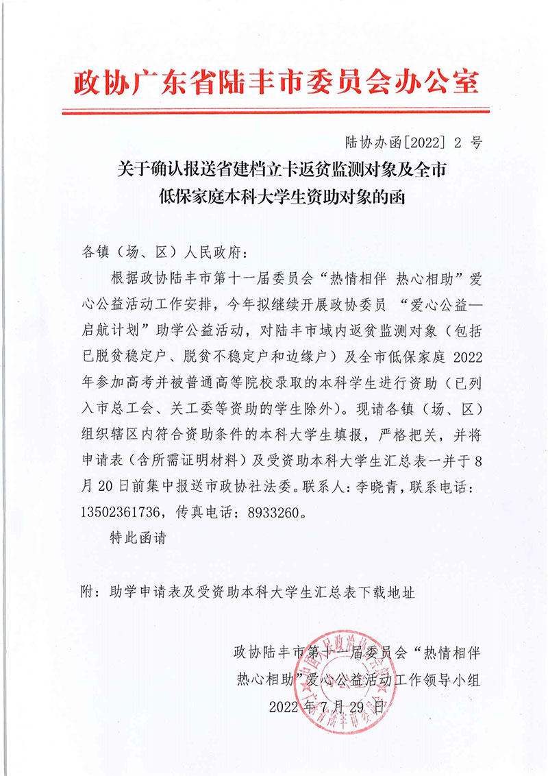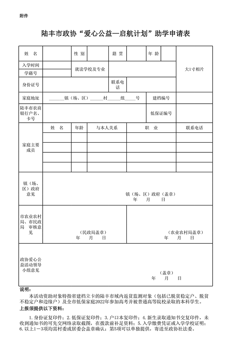 陸豐市政協“愛心行動—啟航活動”助學公益活動申請表