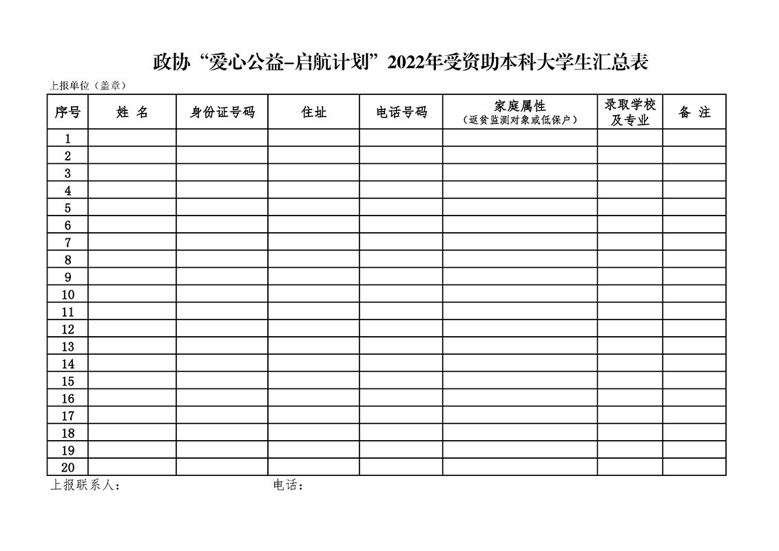 政協愛心公益-啟航計劃2022年受資助本科大學生匯總表