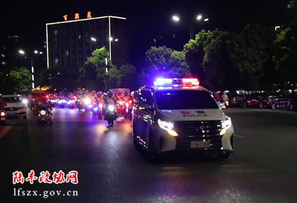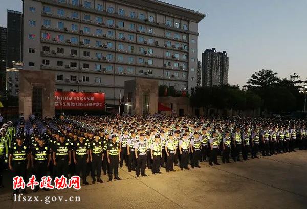 當晚,武裝巡游隊列在市公安局大院集結,來自公安機關1000余名警力集結組成的方陣警容嚴整,隊伍威嚴;各式警車陣形嚴整,蓄勢待發。