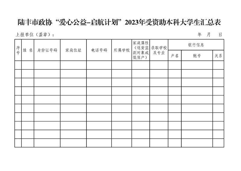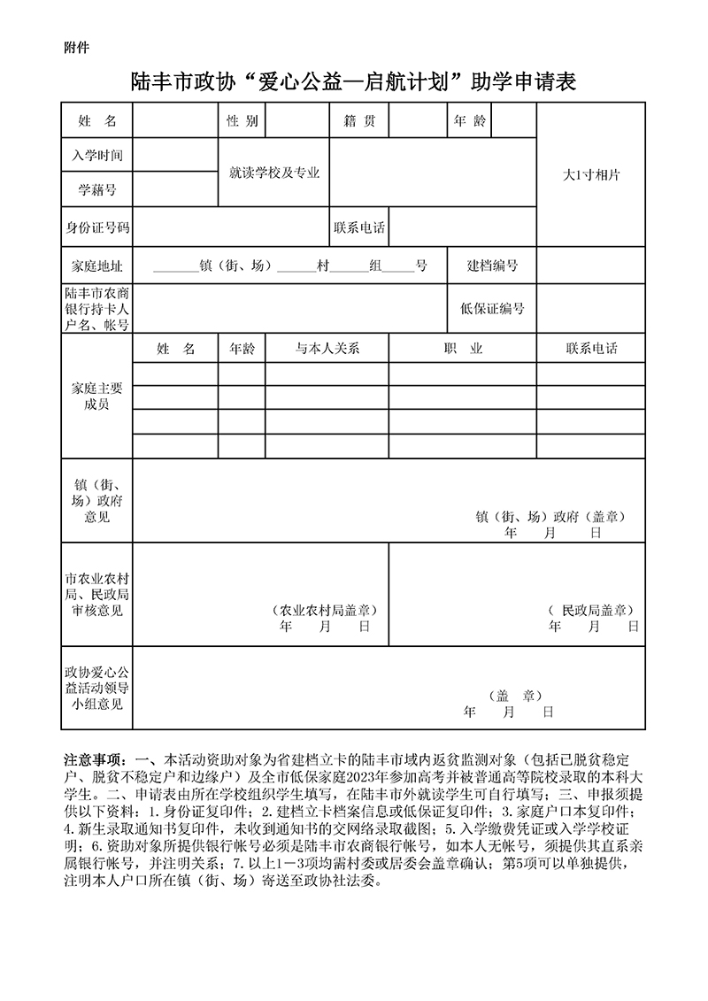 陸豐市政協“愛心行動—啟航活動”助學公益活動申請表