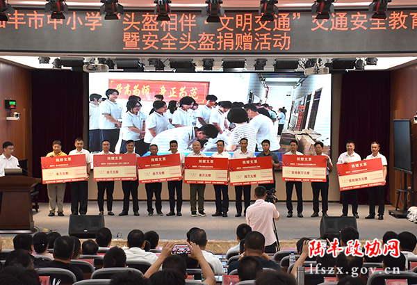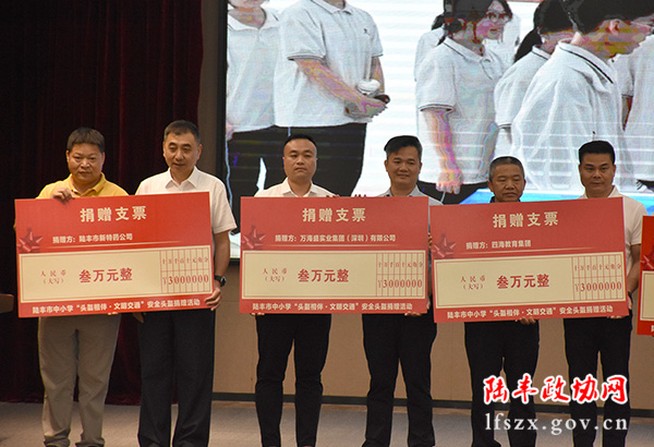 為助力學(xué)生出行安全,陸豐市政協(xié)積極發(fā)動委員參與此次活動,共同呼吁、守護學(xué)生出行安全。陸豐市政協(xié)常務(wù)委員吳金淡、范景海、市政協(xié)委員林少亮積極響應(yīng),所屬企業(yè)——四海教育集團、萬海盛實業(yè)集團(深圳)有限公司、陸豐市新特藥公司在活動中聯(lián)合捐款9萬元,用于購買安全頭盔免費發(fā)放給學(xué)生,合力筑牢出行安全防線,同心協(xié)力保障學(xué)生安全出行。