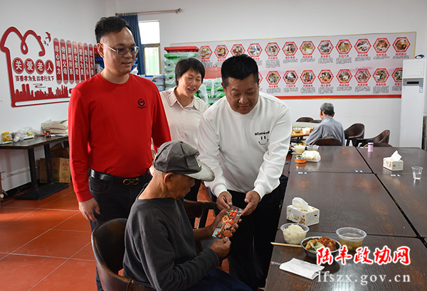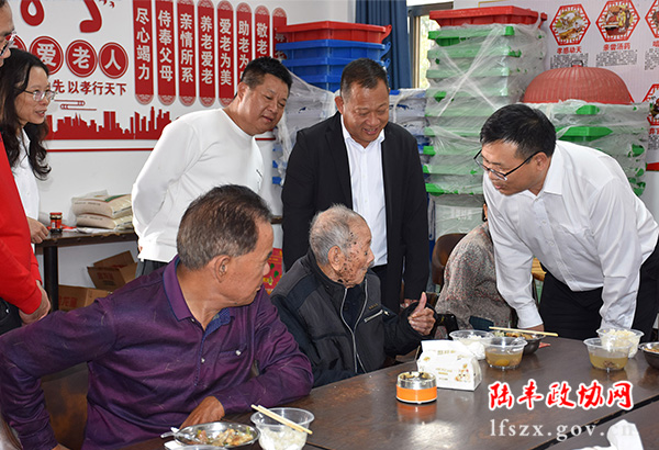 為發揮政協委員心系民生、尊老愛幼的優良傳統。10月29日,市政協主席胡軍帶隊深入河西街道夏隴村開展重陽節走訪慰問活動。在夏隴村幸福食堂,胡軍與用餐老人們親切交流,仔細詢問老人們的飲食起居和身體健康狀況,并為10多位五保老人送上節日慰問金,向他們致以節日問候。同時還為夏隴村發放2萬元幸福食堂運營捐助金,提升幸福食堂的服務水平。