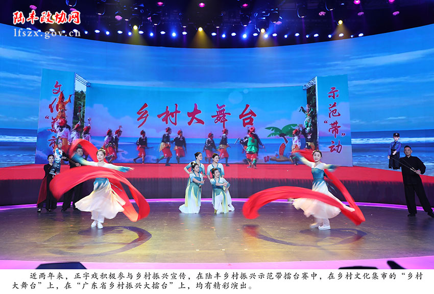 近兩年來,正字戲積極參與鄉(xiāng)村振興宣傳,在陸豐鄉(xiāng)村振興示范帶擂臺(tái)賽中,在鄉(xiāng)村文化集市的“鄉(xiāng)村大舞臺(tái)”上,在“廣東省鄉(xiāng)村振興大擂臺(tái)”上,均有精彩演出。以鄉(xiāng)村振興題材原創(chuàng)的現(xiàn)代戲正字戲精品劇《荷塘月色》于2023年10月、12月分別在大灣區(qū)衛(wèi)視和廣東電視臺(tái)嶺南戲曲頻道、荔枝網(wǎng)全劇播出;2024年1月19日參加由廣東省農(nóng)業(yè)農(nóng)村廳指導(dǎo),汕尾市人民政府主辦,汕尾市“百千萬工程”指揮部辦公室、陸豐市人民政府、汕尾市農(nóng)業(yè)農(nóng)村局、汕尾市商務(wù)局承辦的“奮進(jìn)‘百千萬’,甘薯兆豐年”為主題的2024汕尾(陸豐)甘薯美食節(jié)開幕式演出,得到領(lǐng)導(dǎo)、嘉賓、群眾的高度贊揚(yáng)。