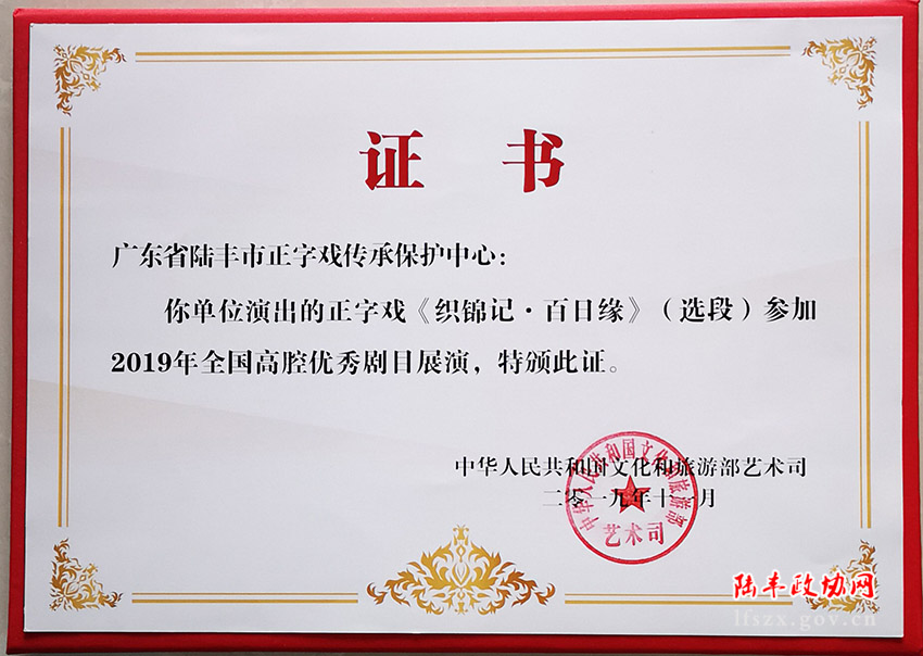 2010年7月陸豐市正字戲劇團(tuán)應(yīng)邀參加香港首屆中國戲曲節(jié)展演,同年10月參加由中國藝術(shù)研究院主辦的BMW中國文化之旅展演,均受到行家和觀眾的贊揚(yáng)。2010年10月由廣東省委宣傳部、省文化廳、中山大學(xué)聯(lián)合主辦的廣東省特色劇種展演暨學(xué)術(shù)研討會(huì)上,正字戲《刺梁驥》《古城會(huì)》參加展演均獲優(yōu)秀劇目獎(jiǎng)。